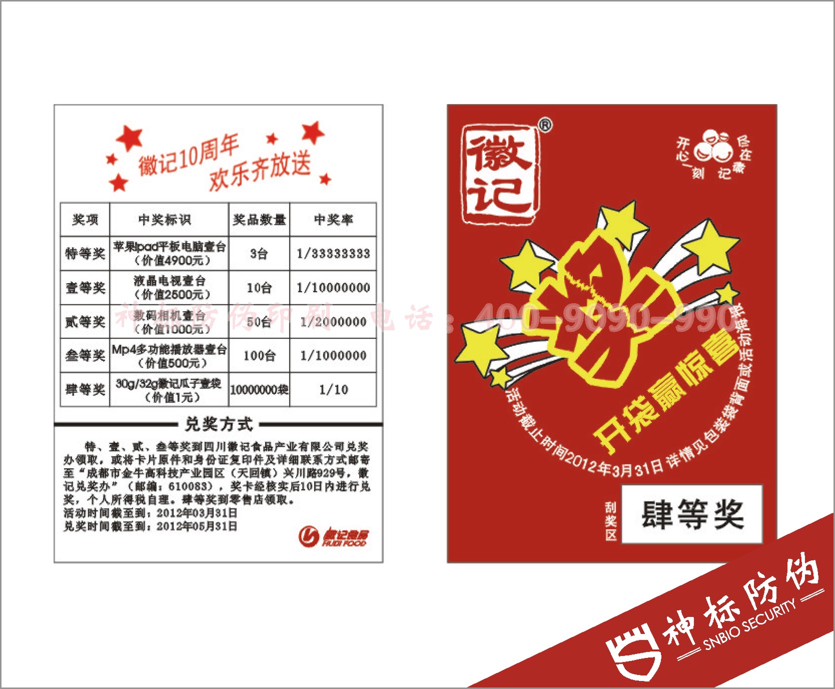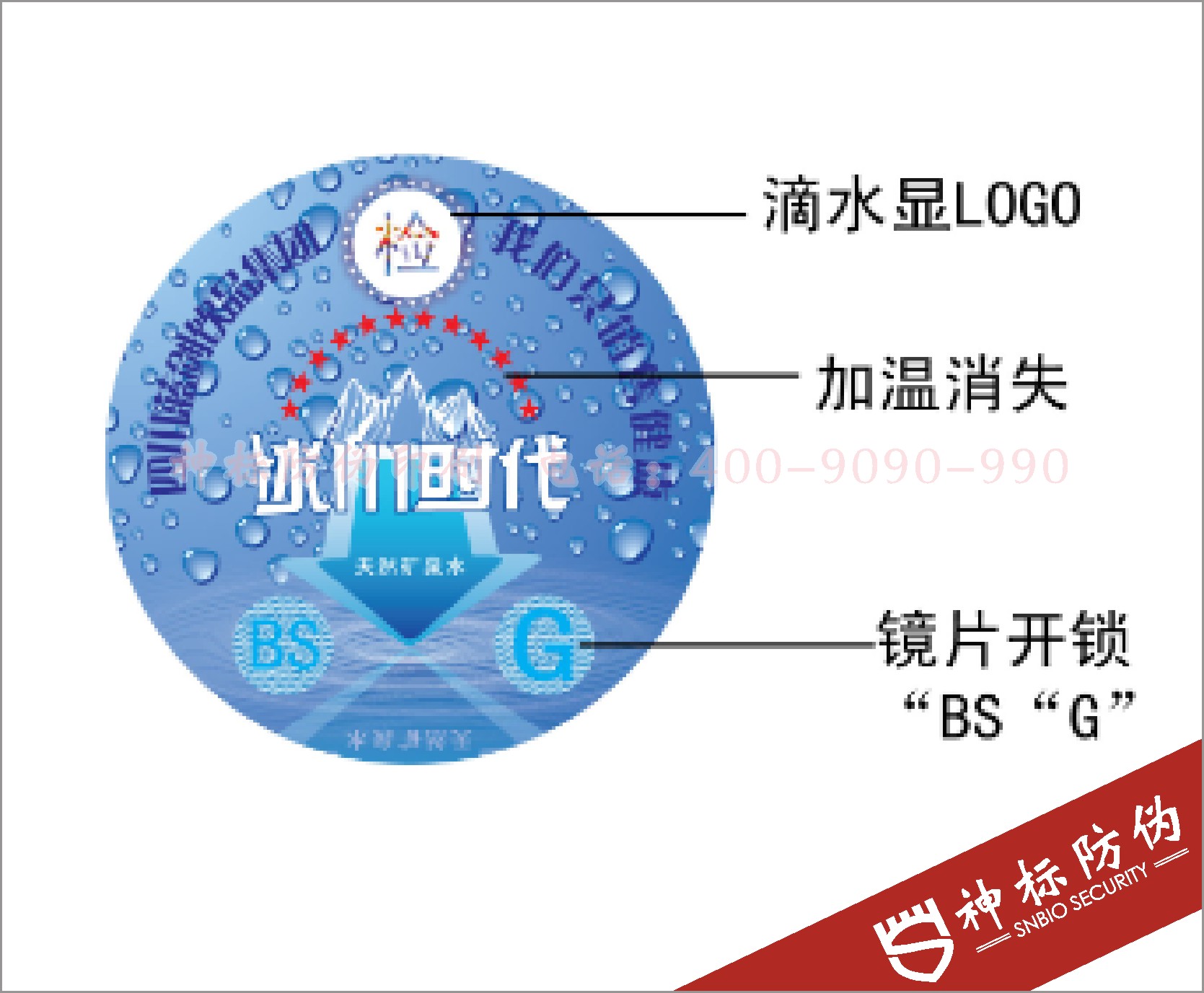 防伪技术:温变技术、滴水技术、镜片开锁、日光变色。材质:进口艾利不干胶